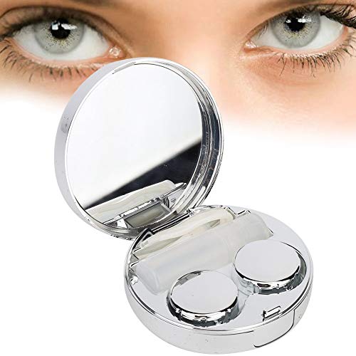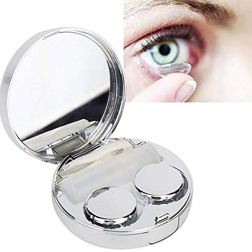 Custodia per lenti a contatto Custodia per mini lenti con specchio Contenitore per lenti oculari portatile e leggero Premium Specchio per viaggi e casa(silver)
