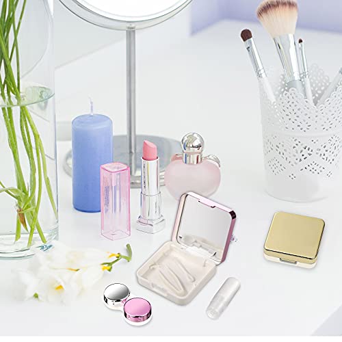 2 Mini Custodia per Lenti a Contatto da Viaggio con Specchio Porta Lenti a Contatto Contenitore Scatola Custodia per l'Immersione delle Lenti a Ammollo, con Cappucci L e R, Rosa e Oro