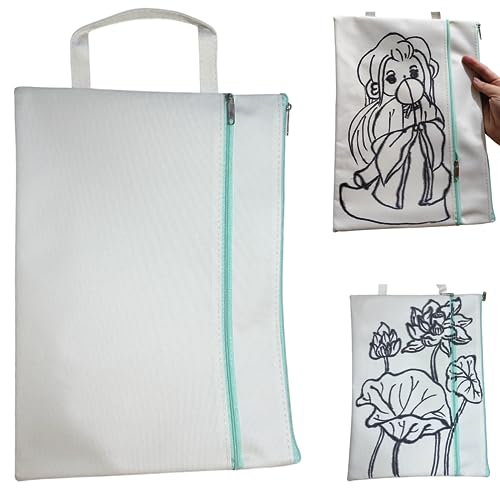 Custodia Per Libri Libro Protettore - Pure White Canvas Book Cover, School Bag Con Tasca Anteriore, Cerniera E Maniglia Portatile, Regalo Per Amanti Dei Libri (Può Fai Da Te Disegno)