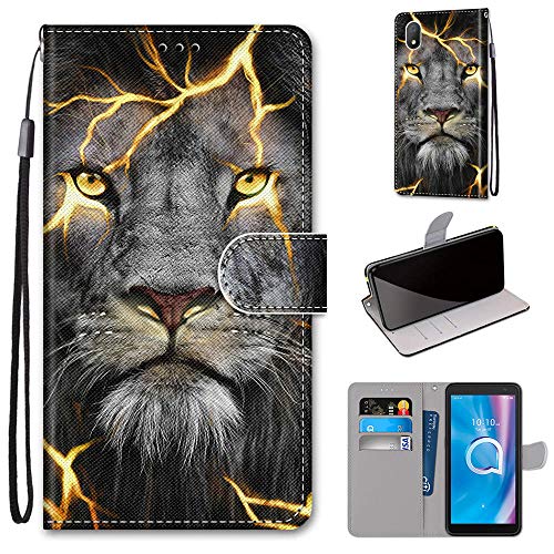 OATE Custodia a Libro Compatibile con alcatel 1B/1A (2020) Chiusura Magnetica Case Protettiva Flip Cover Portafoglio Wallet Alta qualità con Leone fiammeggiante Motivo Design per alcatel 1B/1A