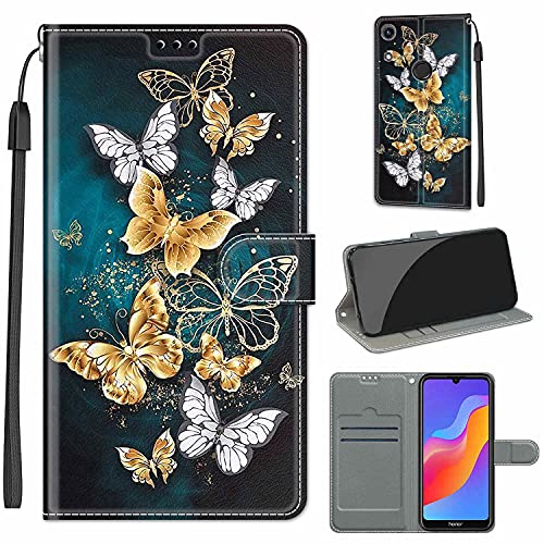 YKTO Custodia a Libro Compatibile con Huawei Y6 2019/Honor 8A Chiusura Magnetica Wallet Case Protettiva Flip Cover Portafoglio Wallet Alta qualità con Farfalla d'oro Motivo Design
