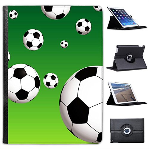 Custodia a libro, in pelle sintetica, con funzione di supporto, per Apple iPad, motivo: palloni da calcio rimbalzanti nero Bouncing Black & White Footballs iPad Air