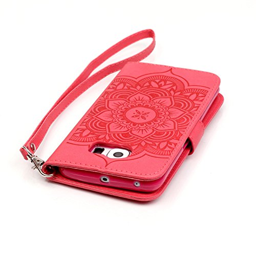 Custodia a libro per Samsung Galaxy S6 Edge, design con mandala in rilievo, in PU, con funzione leggio e scomparti per carte di credito + spina antipolvere