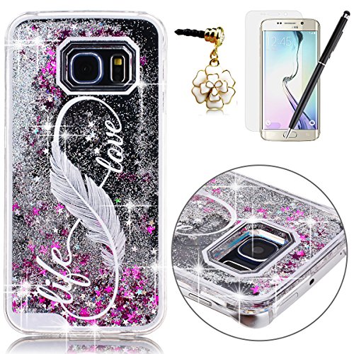 Custodia Liquid per Galaxy S6, HB-Int 4 in 1 Custodia protettiva 3D Luxury Bling Cover posteriore Custodia in plastica rigida con pailette d'argento Custodia in plastica trasparente, sottile, lucida, in policarbonato, Slim Elegante Custodia trasparente Torre Eiffel per Samsung Galaxy S6 + Inserto per la polvere + Protezione per lo schermo + Penna per stilo, Plastica, Feder 3, Samsung Galaxy S6 Edge