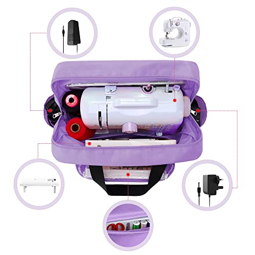 KPCB Tech - Custodia per macchina da cucire con molteplici tasche, universale con tracolla compatibile con la maggior parte delle macchine da cucire standard e accessori, colore: viola