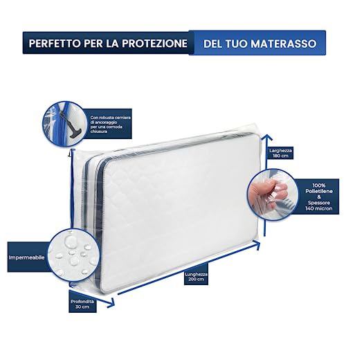 ASK Pack Custodia Materasso con Cerniera Ancora - Misure da XS a XXL, Impermeabile e Antistrappo, Materiale Protettiva Estremamente Resistente fino a 140 micron - Ideale per Trasporto - 180x200 cm