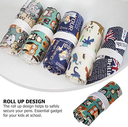 48 Fori Roll Up Custodia a Matite Borsa a Matita di Tela Rullo Portatile Lavabile Durevole, Per Temperature, Matite, Matite Acquerello, Pennelli Trucco, Amici, Studenti, Artisti Ecc—Gufo