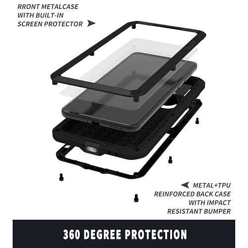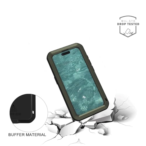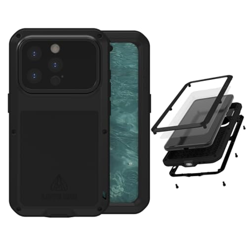 LOVE MEI Custodia in metallo per iPhone 15 Pro (6.1), resistente in metallo di grado militare, antiurto, antipolvere, custodia completa con protezione schermo in vetro temperato integrata per iPhone