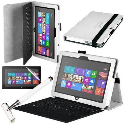 Nauc Custodia per Microsoft Surface Pro 4, con pratica funzione di supporto, in ecopelle, resistente e di design, colore: nero Microsoft Surface RT Weiss + Folie & Pen