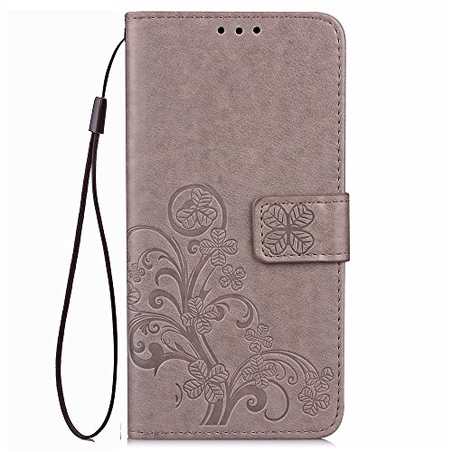 Custodia, Moonmini, in similpelle, a portafoglio, con supporto, custodia protettiva a magnete per Samsung Galaxy J1 (2016) J120 - Colore: Bianco grigio grigio HUAWEI Y6 II/Honor 5A