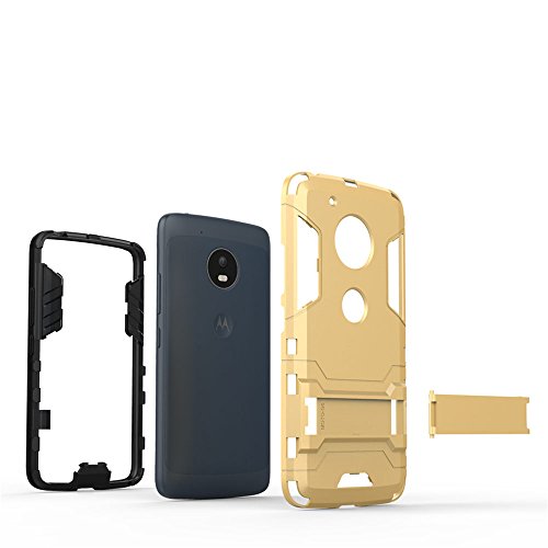 Custodia Motorola Moto G5, MHHQ 2 in 1 nuovo Armour stile resistente Hybrid Dual Layer Armatura Defender PC + TPU Custodie con supporto [Custodia antiurto] per Motorola Moto G5 -Gold