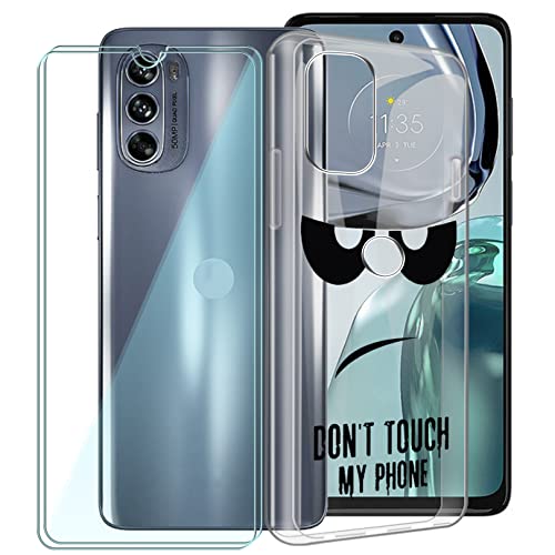 CXKJ Custodia per Motorola Moto G62 5G (6.50 Pollice) + [2 Pezzi] Pellicola Vetro Temperato,Trasparente Cover Morbido Silicone Custodie TPU Cover,per Moto G62 5G Antiurto Case - A1