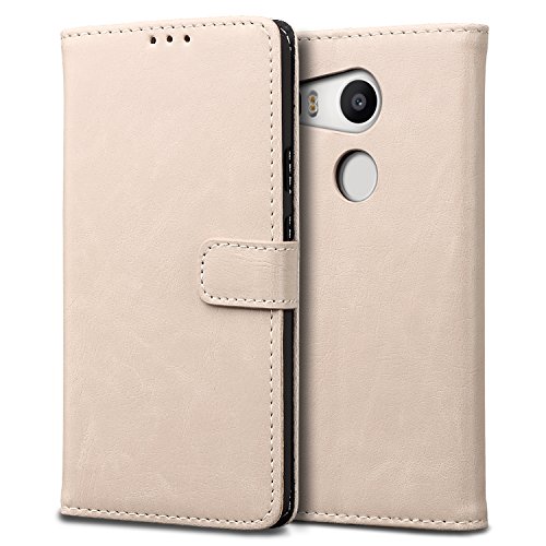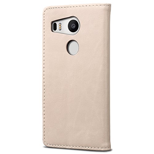 SLEO Custodia LG Nexus 5X, Cover in PU Pelle [Morbido Sottile] Supporto Stand, Porta Carte e Protezione Flip Portafoglio Stile Retro Case con Chiusura Magnetica per LG Nexus 5X - Beige