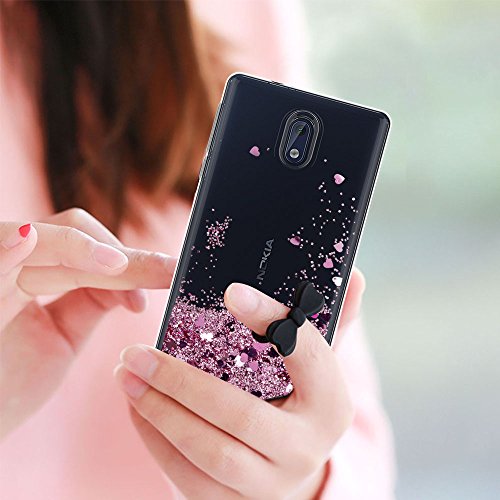 LeYi Custodia Nokia 3 Glitter Cover con HD Pellicola,Brillantini Silicone Gel Liquido Sabbie Mobili Bumper TPU Case per Custodie Nokia 3 Donna ZX Rosa Rose Gold