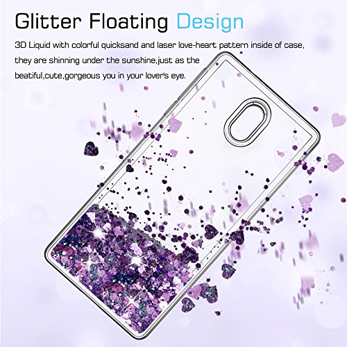 LeYi Custodia Nokia 3 Glitter Cover con HD Pellicola,Brillantini Silicone Gel Liquido Sabbie Mobili Bumper TPU Case per Custodie Nokia 3 Donna ZX Purple