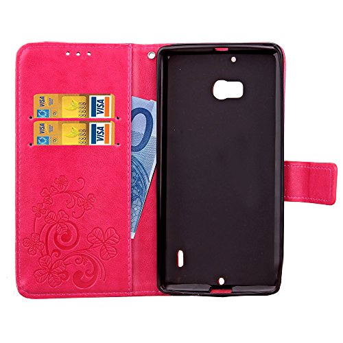Custodia Nokia Microsoft Lumia N930,Ukayfe Flip Cover Wallet Case Custodia per Nokia Microsoft Lumia N930 in pelle PU,Nokia Microsoft Lumia N930 Lussuosa Astuccio Custodia Cover [PU Leather] [Shock-Absorption] Protettiva Portafoglio Cover Custodia Giuntura da Polso Foglio con Trifoglio Disegno con Super Sottile Morbido Silicone TPU Interno Case e Porta carte di credito Portafoglio Custodia Protettiva Cover Copertura Tutta Potente per Nokia Microsoft Lumia N930-Rosa caldo