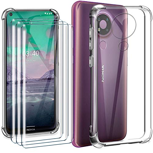 HYMY Custodia per Nokia 3.4 + 3 x Pellicola Protettiva - Trasparente Silicone Case TPU Protettivo Rinforzo a Quattro Angoli Resistenza sismica Cover per Nokia 3.4