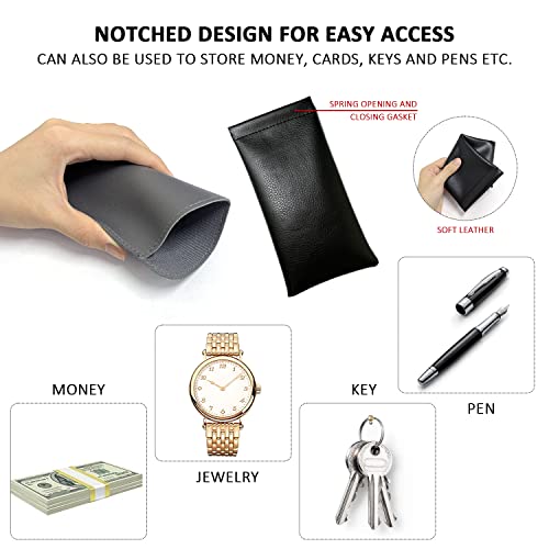 【Pacchetto incluso】: 2 borse per occhiali in pelle (grigio chiaro, grigio scuro) e 1 custodia nera con bottone a pressione