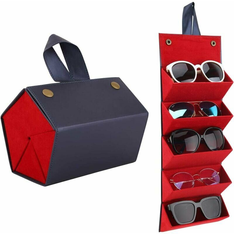 Descrizione del prodotto Materiale Pelle Usa custodia per occhiali Custodia per occhiali stile cinque griglie Colore Acciaio blu [protezione completa] L'esterno in pelle PU di alta qualità e l'interno morbido e liscio proteggono bene i tuoi occhiali dai graffi. Inoltre, è l'organizzatore e il supporto perfetto per gli occhiali. [Scomparti multipli] Progettato con 5 scomparti per riporre occhiali, occhiali da sole, fascia per la testa. Guscio rigido in PU con spazio di archiviazione separato, c'è abbondanza di spazio per riporre e proteggere i tuoi occhiali. [Pieghevole e portatile] Questo leggero organizer per occhiali può essere ripiegato e riposto in una scatola o in una borsa e il cinturino da polso è facile da trasportare e risparmia più spazio. Comodo per le attività all'aperto o per i viaggi. [Design in piedi e sospeso] Apri la custodia in modo che diventi e un mezzo. Con il design sospeso, può essere appeso a parete, mensola, armadietto, ecc. Risparmia spazio e rende la tua