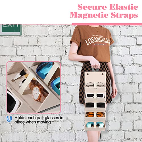 MoKo Custodia Occhiali con 5 Scomparti, Organizzatore Occhiali da Sole Piegabile in Pelle, Appendibile al Muro, Protezione Graffi Urti Accessori Occhiali, Costodia per Occhiali da Sole, Grigio