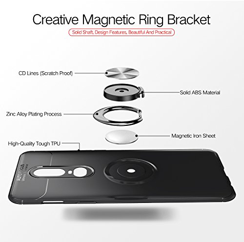 Custodia per OnePlus 6T,Morbido Silicone [Cavalletto a 360 ° Squillare] [Montare il Supporto Magnetico per Auto] (OnePlus 6T, Noir)
