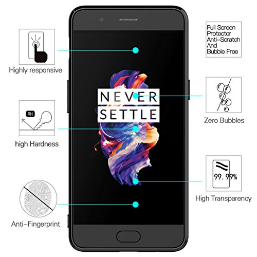 Oneplus 5 Custodia in silicone nero colore ultra slim opaco coperchio ha mano eccellente sentire, con copertura completa display pellicola protettiva per il colore nero temperato vetro fornisce il tuo cellulare 360 protezione