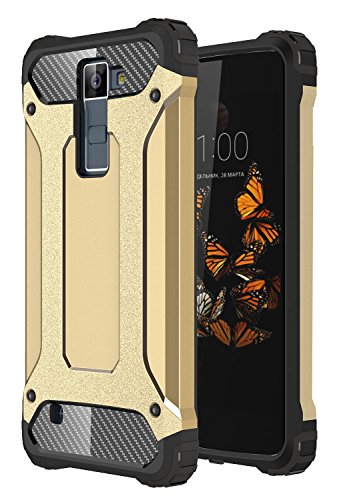 Custodia LG K8, Pasonomi LG K8 Custodia Resilient [Rugged Armor] Doppio Strato Portatile Custodia Copertura Protettiva Custodia Cover Case per LG K8, Oro