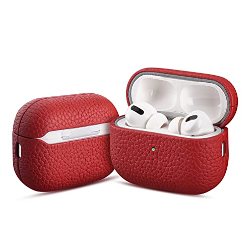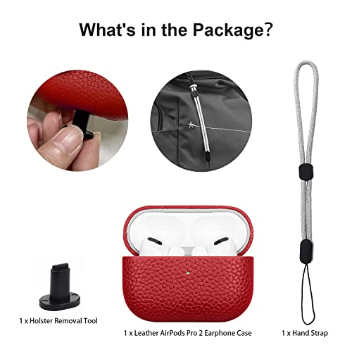 Custodia in Pelle per AirPods Pro 2nd Generation 2022 con Cinturino da polso, Vera pelle, Antigraffio(Rosso acero)