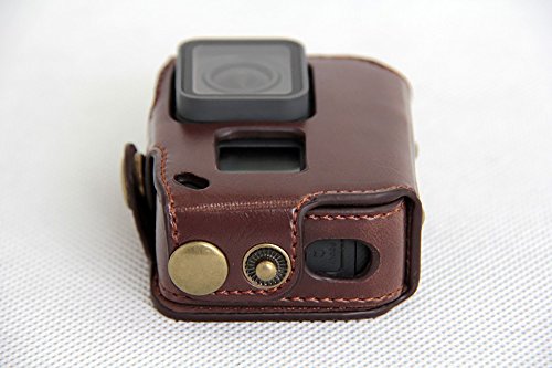 Custodia in pelle PU compatibile con GoPro Hero 5/6/7 Action Camera Frame Mount Housing con tracolla regolabile/Cinturino in vita Accessori Marrone scuro