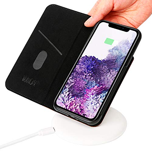 Custodia in pelle conciata al vegetale per Apple iPhone 11 Pro, con scomparto per carte di credito, chiusura magnetica, colore: Marrone