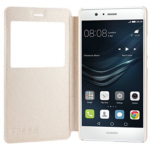 Custodia in pelle Huawei P9 lite, EnGive PU Premium pelle SmartView caso di vibrazione per Huawei P9 lite dorato
