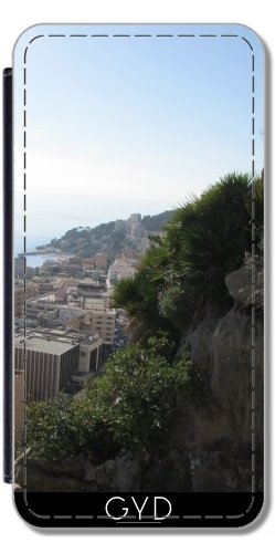 DesignedByIndependentArtists Custodia in PU Pelle per Samsung Galaxy S2 (GT-I9100) - Monaco Scogliera Giardino by Cadellin