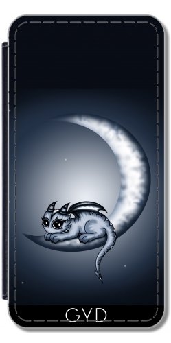 DesignedByIndependentArtists Custodia in PU Pelle per Samsung Galaxy S9 Plus (SM-G965) - Drago sulla Luna by Pezi Creation