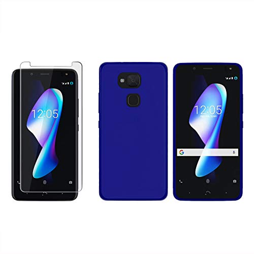TBOC Pack: Custodia Gel TPU Blu + Pellicola Protettiva per Display in Vetro Temperato per bq Aquaris V Plus (5.5 Pollici). Silicone Ultra Sottile Flessibile. Resistente Urti e Graffi