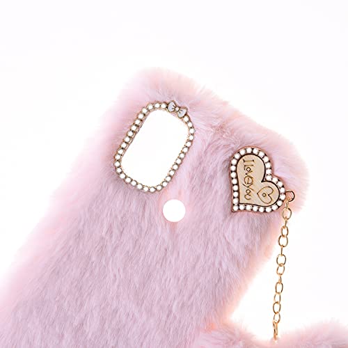 Custodia Peluche per Oppo A53 4G 2020/A53s/A32 Carino Morbido Peloso Ciondolo Love Inverno Soffice Caldo Hairball Cover Protettiva Fluffy Cover Bambine Copertura Caso per Oppo A53 4G 2020/A53s, Rosa