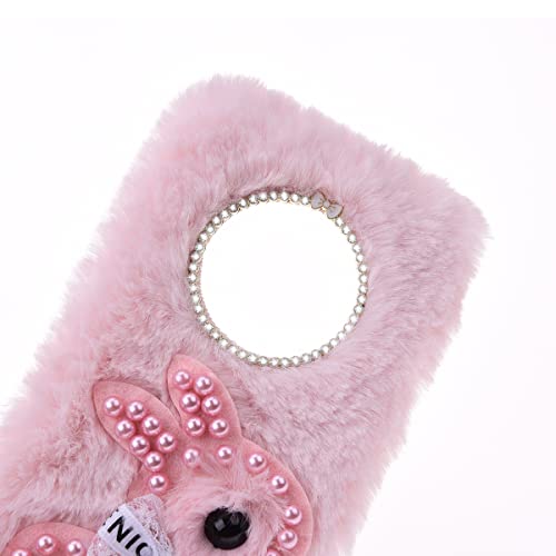 Custodia per peluche Coniglietta per Nokia 3.4 Custodia per Telefono Ragazza Coniglio con Diamanti Glitter Comoda Custodia per Telefono in Finta Peluche Compatibile con Nokia 3.4,Coniglio Rosa Perla
