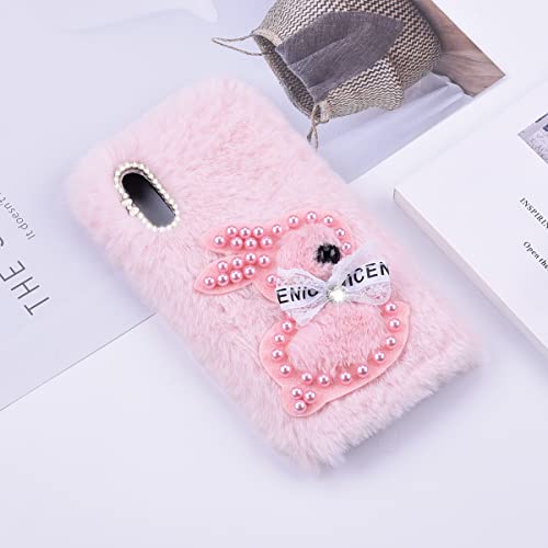 YKTO Custodia per peluche Coniglietta per XiaomiMi A3 Custodia per Telefono Ragazza Coniglio con Diamanti Glitter Comoda Custodia per Telefono in Finta Peluche XiaomiMi A3,Coniglio Rosa Perla