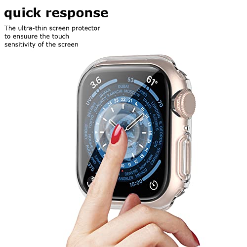 Custodia da 2 pezzi con proteggi schermo compatibile con Apple Watch Series 8/7 41 mm, cover protettiva slim fit in cristallo trasparente per accessori iWatch 41 mm, Trasparente