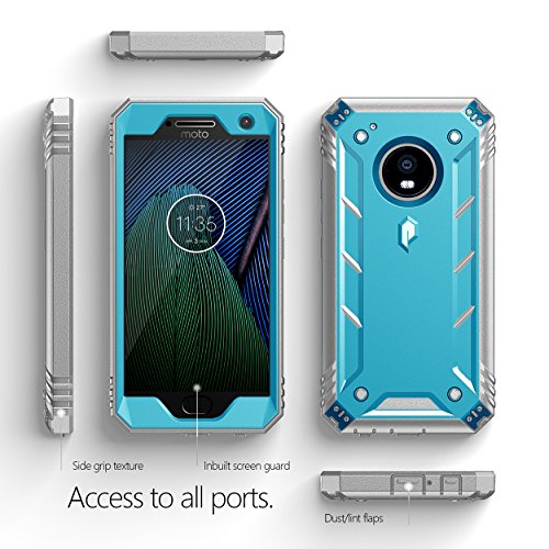 Custodia Moto G5 Plus (2017) - Poetic [Serie Revolution] - [Resistente] [Doppio Strato] Custodia Protezione Ibrida Completa con Incorporato Proteggi Schermo per Moto G5 Plus (2017) Blu