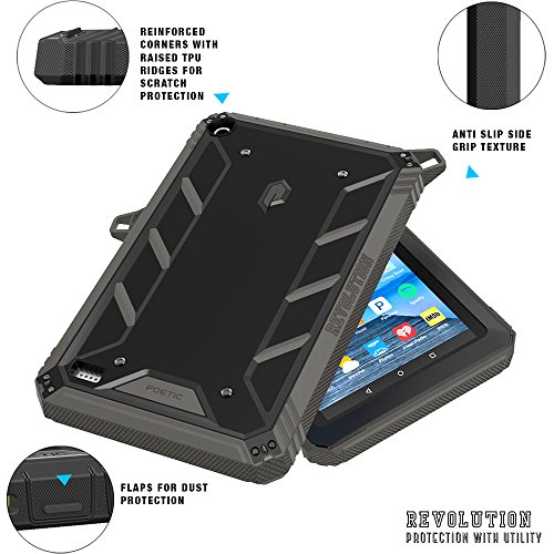 Custodia Fire 7 2015 - Poetic [Serie Revolution] - [Resistente] [Doppio Strato] Custodia Protezione Ibrida Completa con incorporato Proteggi Schermo per Amazon Fire 7 5th Gen (2015) Nero/Grigio Scuro (3 Anni di Garanzia del Produttore Poetic)