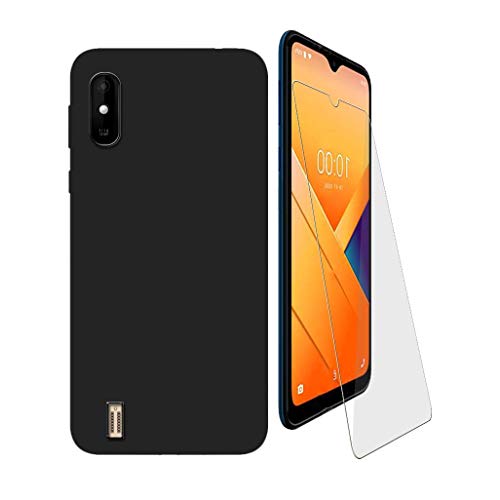 CXKJ Custodia per Wiko Y81 (6.2 Pollice) Nero Cover + Pellicola Vetro Temperato, Morbido Silicone Custodie Protettivo TPU Gel Cover Protezione Slim Anti Case - Nero