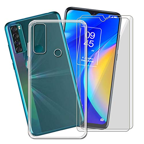 CXKJ Custodia per TCL 20 Se (6.82 Pollice) Cover Trasparente + [2 Pezzi] Pellicola Vetro Temperato, Morbido Silicone Custodie Protettivo TPU Gel Cover Protezione Case - Trasparente