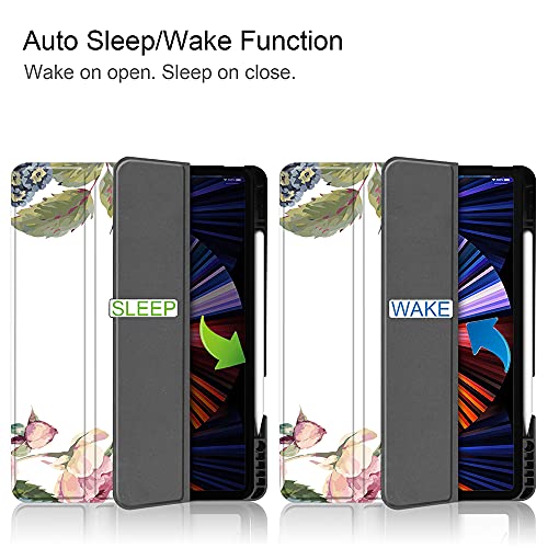 SDH Custodia per iPad Pro 12.9 pollici 5th Gen 2021 Release, supporto Apple iPad Pencil Holder & Wireless Charging, Soft TPU Back Shell Stand Smart Cover Tablet Sleeve 2 in 1 Bundle Fresh Flowers 4