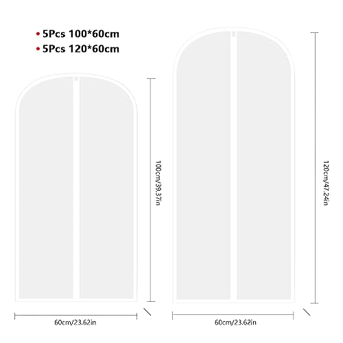 Custodia Porta Abiti, 10 Pezzi Sacchetti per Vestiti con Chiusura, Cerniera Lavabile Buste da Viaggio Borsa Porta Abiti per abiti, cappotti, abiti, camicie e abiti (40"+48")