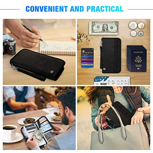 Custodia porta documenti anti-RFID, organizer per passaporti e altri documenti, unisex, 25 x 14 cm, colore nero
