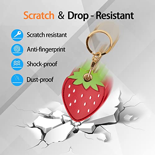 Custodia portachiavi in pelle compatibile con Apple AirTag, GPS Airtag portachiavi tracker con portachiavi, custodia protettiva antigraffio per chiavi, portafoglio (fragola)