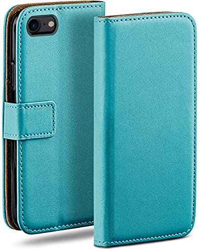 MoEx Custodia a Portafoglio per Apple iPhone 7 / iPhone 8, Custodia per Cellulare con Tasca per schede e Carte Credito, Protezione a 360°, in Pelle vegana, Acqua - Ciano