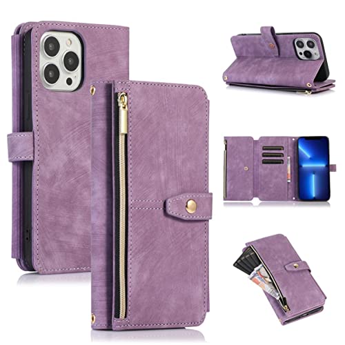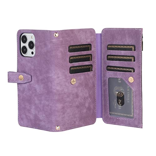 Custodia a portafoglio per iPhone 14 Pro Max per donna uomo regalo Flip Folio Cover con porta carte di credito Strap Zipper Money Pocket Fold Stand Full Body Silicone iPhone 14 Pro Max Custodia da