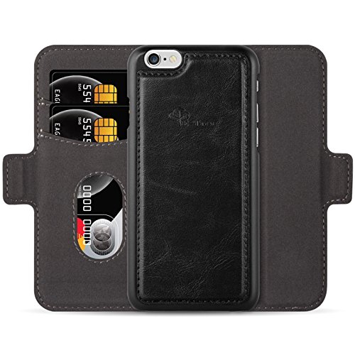 Custodia e portafoglio per iPhone 6/6S, E-Tree 2 in 1 staccabile Case in Pelle Con Magnete Supporto Stand in blocco RFID Portafoglio Porta Carte e Protettiva Flip Portafoglio Flip Case - Nero