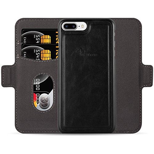 Custodia e portafoglio per iPhone 7 Plus / 8 Plus, E-Tree 2 in 1 staccabile Case in Pelle Con Magnete Supporto Stand in blocco RFID Portafoglio Porta Carte e Protettiva Flip Portafoglio Flip Case - Nero